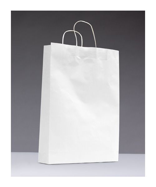 Medium white kraft paper bags with white paper twisted handles. This traditional bag is made from high quality Kraft paper sourced from plantation forests.